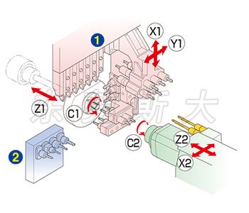 | 四、斯大走心機SR-20JIItypeA橫向鉆孔5軸單元下方2軸,采用模塊化設計,可根據工件需要自由安裝可交換式工具,實現工藝的靈活性,通過功能模塊的組合,輕松實現各種變化,以此獲得機床的最佳結構。 | |||