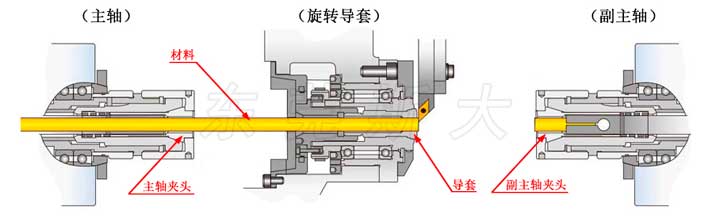 一、安裝位置:走心機主軸夾頭安裝在主軸前端夾持原材料,走心機導(dǎo)套安裝在活動導(dǎo)套內(nèi)部扶持原材料,走心機副軸夾頭安裝在副主軸前端,夾持產(chǎn)品而背面加工。 |